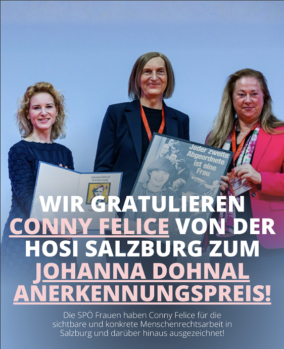 Die SPÖ-Frauen haben der Chefin der HOSI Salzburg, Conny Felice, den Johanna-Dohnal-Anerkennungspreis verliehen. Das steht ihnen natürlich frei. Es ist allgemein erfreulich, wenn die Leistung für eine Sache vor den Voraussetzungen der Personen steht, und ich möchte Frau Felice hier auch dazu gratulieren.